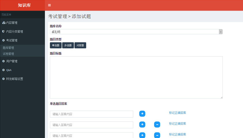 - 考試管理: 管理微信端的答題試卷和題庫(kù)信息